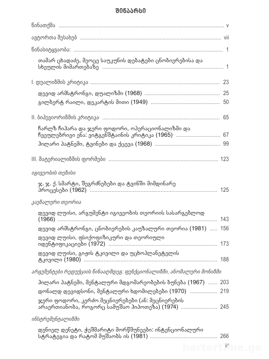 'ქრესტომათია მკითხველს სთავაზობს თანამედროვე ფილოსოფიის ერთ-ერთ ცენტრალურ დარგში - ცნობიერების ფილოსოფიაში- მიმდინარე დებატების განმსაზღვრელი ტექსტების ქართულ თარგმანებს'.